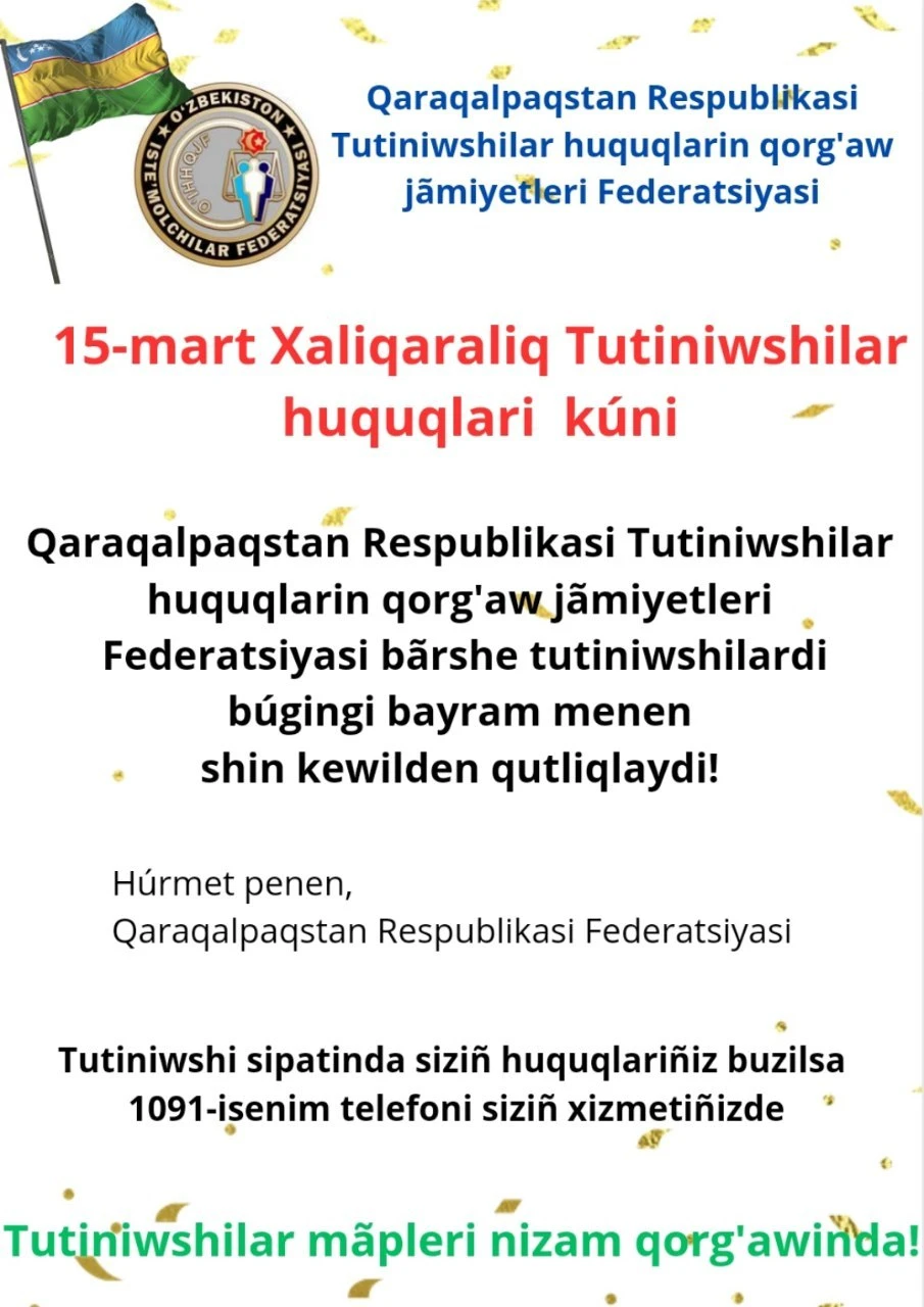 Qoraqalpog'iston Respublikasi Qoraózak tumani Iste'molchilar huquqlarini himoya qi...